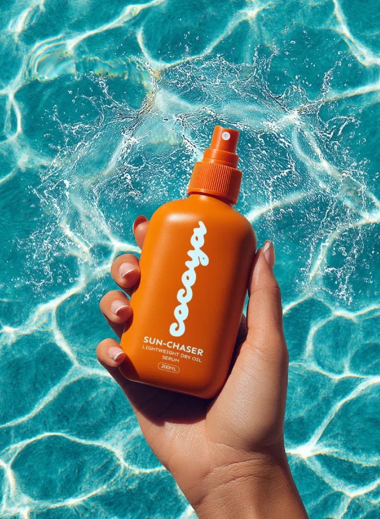 Luxury skincare deserves packaging that feels as good as the product inside. We designed this stunning product packaging for Cocoya Sun-Chaser — a premium skincare brand that needed a visual identity as vibrant, fresh, and confident as its formula. The rich burnt orange bottle, fluid script typography, and clean minimalist label design come together to create a product that radiates warmth, luxury, and natural elegance.